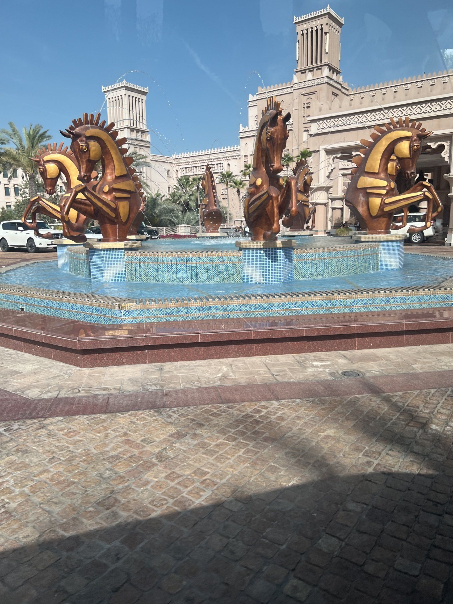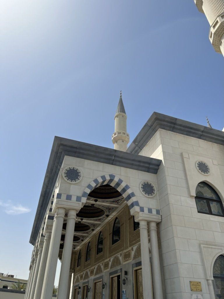 La Moschea di Al Farooq Omar Khattab, una delle più grandi degli Emirati, conosciuta come Moschea Blu per la somiglianza con la moschea turca del Sultano Ahmed, dove lo stile ottomano si fonde con quello andaluso; vanta quattro minareti molto alti, 21 cupole, 124 vetrate colorate una tradizionale fontana; migliaia di piastrelle in ceramica turca di Iznik decorano le pareti e le arcate interne, mentre i pavimenti sono coperti da favolosi tappeti rossi e dorati